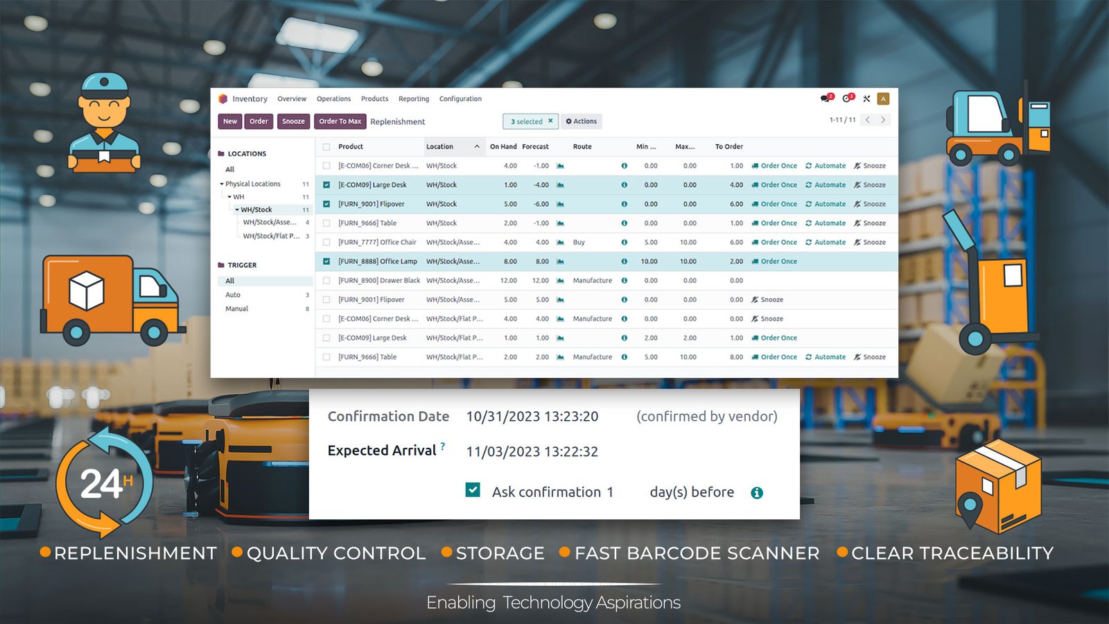 - Set up complex workflows, including drop-shipping, multi-warehouse transfers, and just-in-time replenishment.