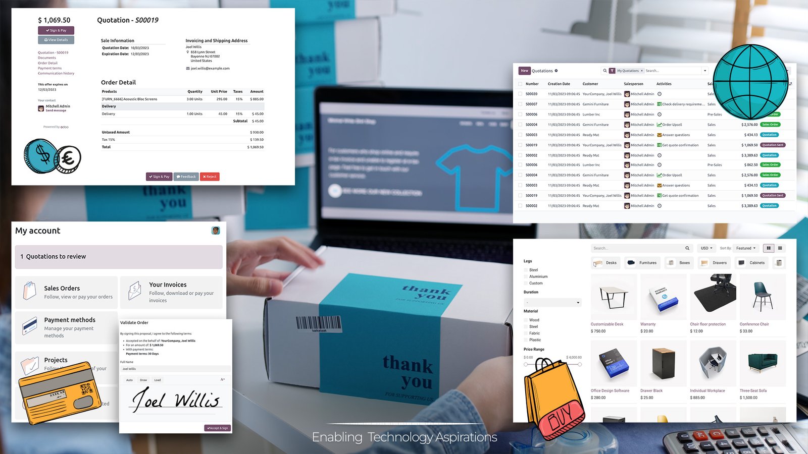 - Includes invoicing policies, pro forma invoices, and upselling tools.